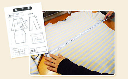 洗う前に採寸し記録、それをもとに洗った後に変化がないか確認しています。