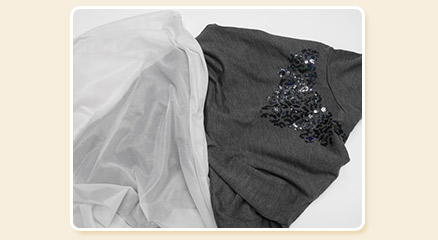スパンコールなどの装飾がある品物はネットに入れ、丁寧に洗います。