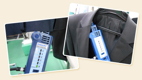 ドライクリーニングをしたものはドライ独特のにおいが残留してないかをドライチェッカーで検査しています。